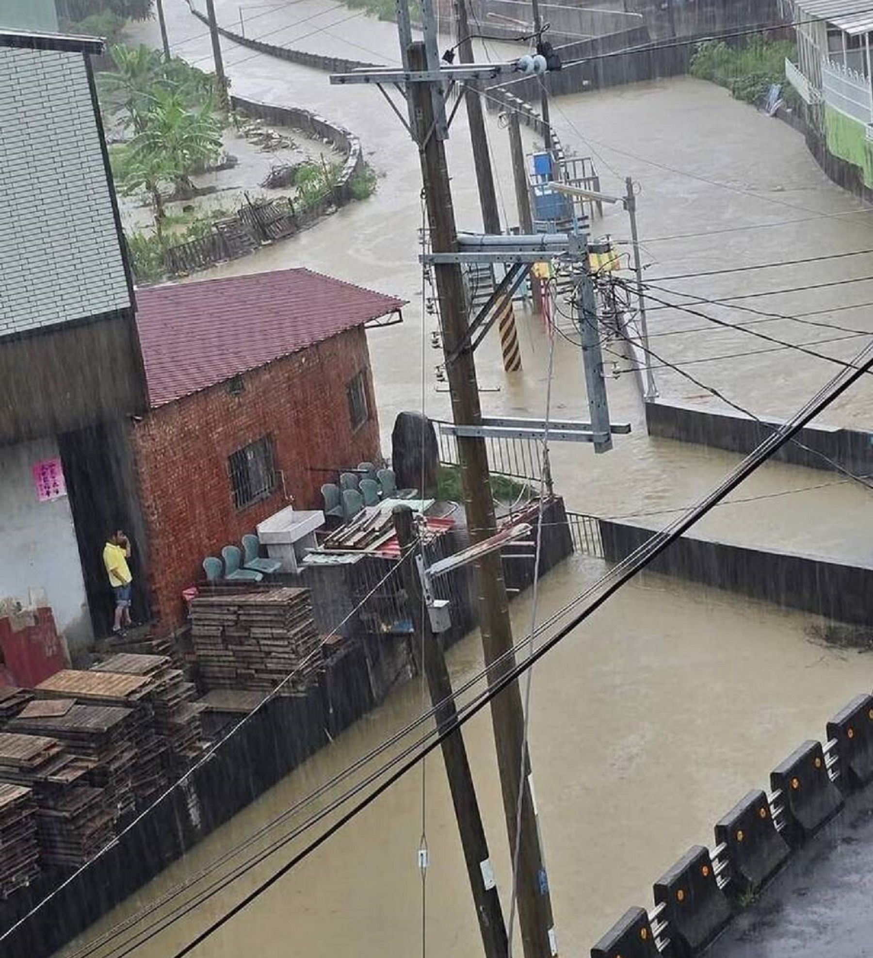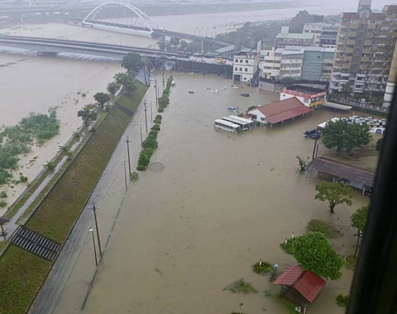 氣象署對南投縣發布大雷雨特報,大雨狂下在南投市、中寮鄉、名間鄉、國姓鄉,其中以南投市最驚人,上午8點到9點的時雨量高達88毫米,南投市較低窪的南營路、東山路等地區,溪流和道路都是黃色泥水,綠橋畔的大眾汽車駕訓班停車場淹成小河,有多部未移走的汽車泡水。