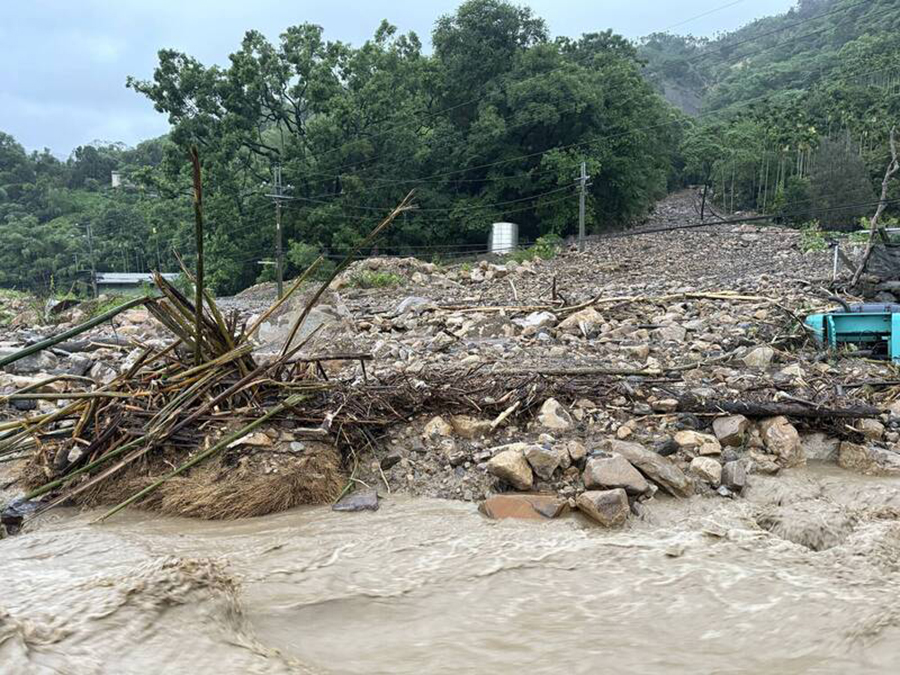 【記者陳良安,吳素珍南投報導】南投縣從30日起暴雨不斷,其中水里鄉累積雨量已破600毫米,位在水里鄉與信義鄉交界的保甲林野溪又爆發土石流,導致聯外交通中斷,目前已有機具進行搶修,盼儘快搶通單線,恢復聯外交通。