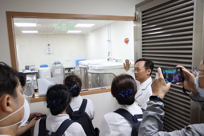 而有鑑於馬來西亞是海外最早成立洗腎中心的人醫會,此行人文室也安排由腎臟內科病房賴宇軒主任帶領參訪花蓮慈院血液透析室和腹膜透析室,並介紹目前慈院腎臟內科一系列AI教學、病人APP等,讓治療更精準的創研成果。下午更由人文室吳淑潔師姊帶領團隊到花蓮慈院大愛溯源館進一步了解花蓮慈院的歷史,並到基因暨幹細胞研製中心參觀花蓮慈院的細胞製程,由孫立易主任親自導覽,最後至心蓮病房了解安寧醫療。