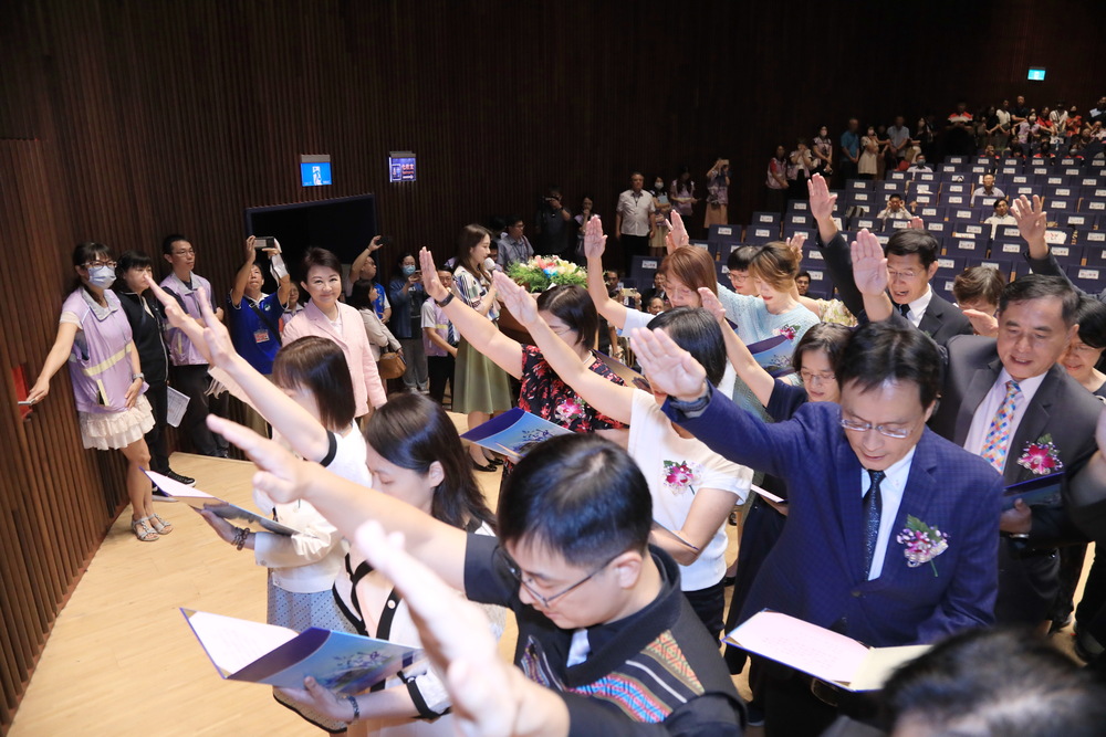 代表新任校長致詞的龍井區龍峰國小黃中興校長表示,他們所領導的,不只是學校,而是一群孩子的成長旅程、一群老師的專業發展,更是一個社區共同的教育願景,未來會秉持市長所持「溫暖台中、親如家人」的理念,在各自的學校裡,打造出一所所讓孩子喜歡來、老師樂於教、家長願意參與的幸福校園。