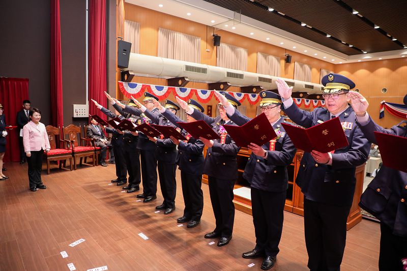 【記者許順德臺中報導】臺中市政府警察局1日上午於八樓大禮堂舉辦新、卸任局長,及分局長、大隊長交接典禮,由市長盧秀燕主持、內政部次長馬士元監交;盧秀燕致詞表示,原任局長李文章績效卓著,祝福他升遷,她也稱讚新任局長吳敬田學經歷優良,相信在其領導下臺中警政會更良好。