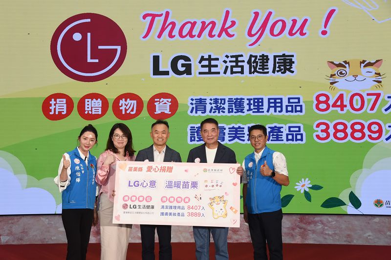 率先為愛心平台挹注善款和物資的基金會和企業,都深耕苗栗這片福田多年,金額普遍已逾數千萬元,大家在啟動儀式中,也表示會持續支持縣府並延續善緣。其中,達成基金會捐贈300萬元;慶福基金會與LG生活健康則捐出涼感衣1萬4000件、袖套5000雙及清潔、護膚等物資共逾萬件。縣長鍾東錦率社會處長張國棟及縣工策會總幹事陳怡樺代表受贈,並回贈「德澤四方」與「惠及社群」琉璃座致謝。