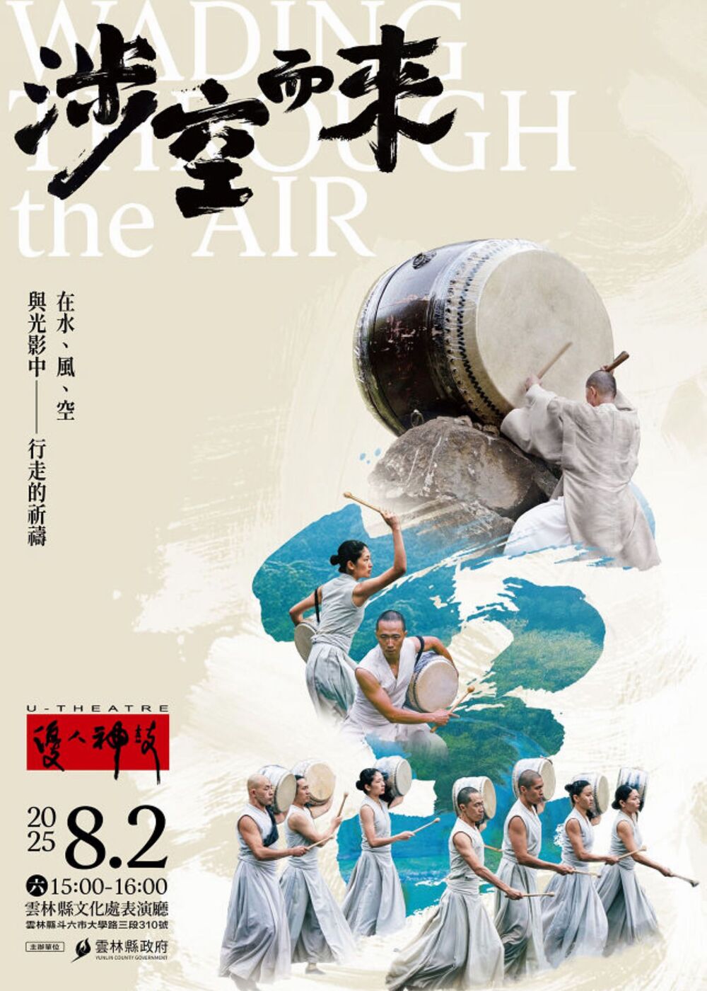 文化觀光處長陳璧君則指出,本次除了在雲林表演廳售票演出之外,演出當天上午10:30開設2025優人生活輕體驗工作坊,一推出就秒殺,均已額滿;優人神鼓也在鎮西國小開設雲林小優人禪鼓藝術夏令營,受到小朋友的喜愛。《涉空而來》突破傳統擊鼓形式,演出自「破曉」揭開序幕,逐步進入「漩中渦」與「度母心海」的內在探索,在核心篇章「涉空而來」中直面自我與虛無,接著歷經「蝕」的反思與消融,最終以「鼓盆而歌」作結,在生命節奏中重生與釋放,提供忙碌現代人一場如詩如歌、亦幻亦真的心靈旅程。