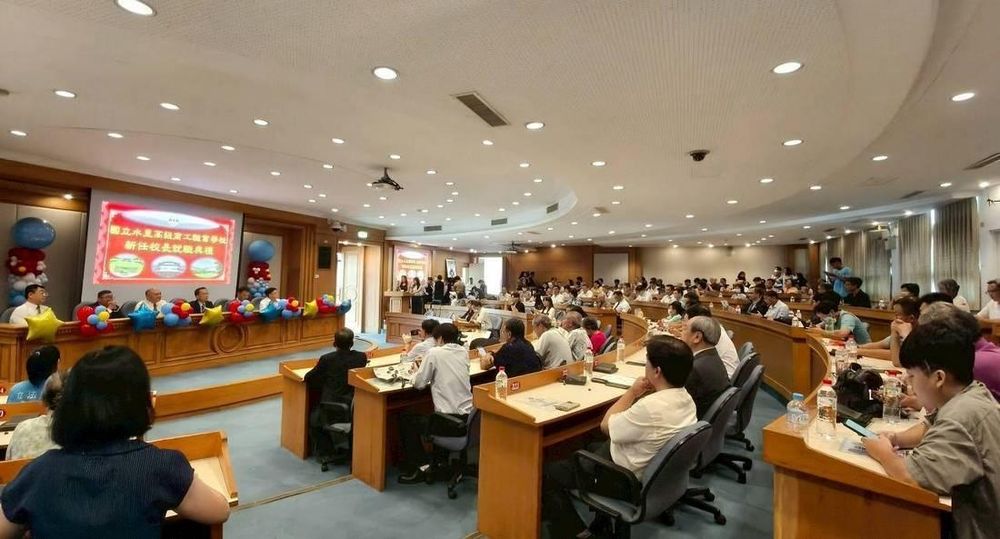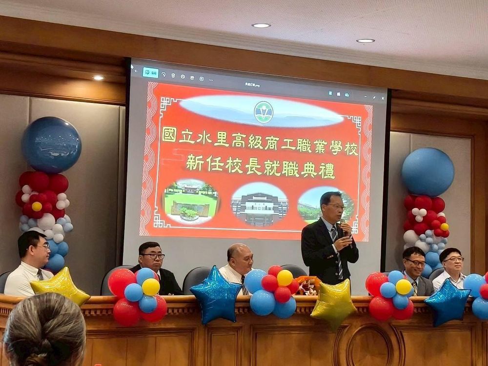 【記者吳素珍水里報導】國立水里商工8月1日在該校國際會議廳舉行新、卸任校長交接暨新任校長就職典禮,卸任校長徐文法屆齡榮退,新任校長由台中市立霧峰農工教務主任許文雄接任。典禮會場冠蓋雲集、場面盛大,各界長官來賓、地方仕紳、教育界師長、家長會和顧問團代表、舊雨新知、親朋摯友們等300餘人觀禮,將會場擠得水洩不通。典禮中有徐文法校長在水商107年至114年七年的影片回顧與許校長的影片介紹,還有各界致贈兩位校長紀念品與合影,讓會場充滿了溫馨與感恩氣氛,及對水商未來滿懷的期待。