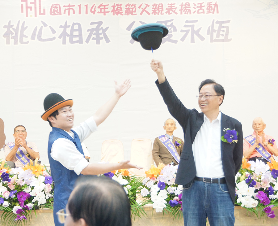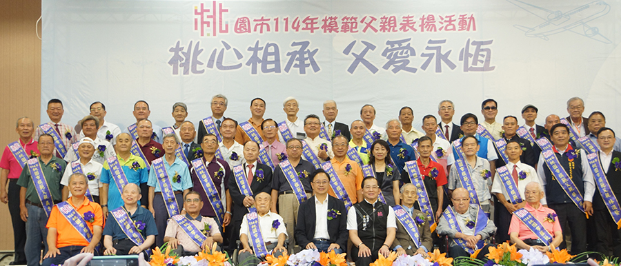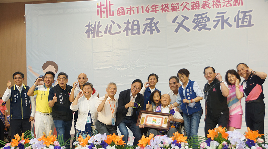 張善政表示,下個禮拜就是8月8號父親節,我非常高興在此頒獎給52位模範父親,這52位模範父親是透過居公所或是機關團體所選出來最好的父親代表,我想父親和母親都一樣,在一個家庭中扮演非常重要的角色,是家庭幸福與穩定的重要支柱,我期待透過今天模範父親的表揚和頒獎,讓我們所有桃園的家庭都看到這些模範父親的事蹟,帶動每一個家庭幸福的氛圍,也期盼透過模範父親的感人事蹟與奉獻精神,凝聚家庭向心力,並為年輕世代樹立榜樣,共同營造更加和諧團結的社會。