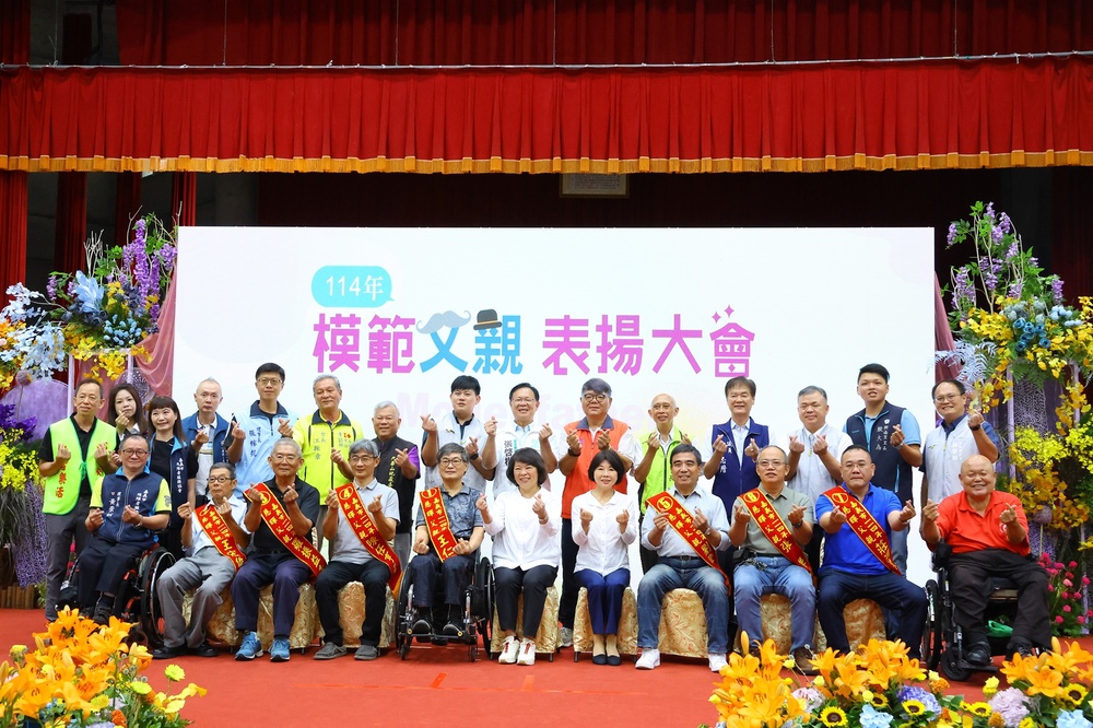 黃敏惠市長在典禮前,與所有模範父親一一握手致意,唱名所有的慈暉父親表達敬意。議長陳姿妏與多位議員,立委張啟楷、九華山地藏庵董事長黃俊森也一同參與合影、頒獎等環節,共同向獲獎的父親們道祝福。