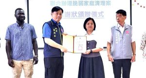 桃園市長張善政與日本香川縣議會議長谷久浩一互贈禮物。