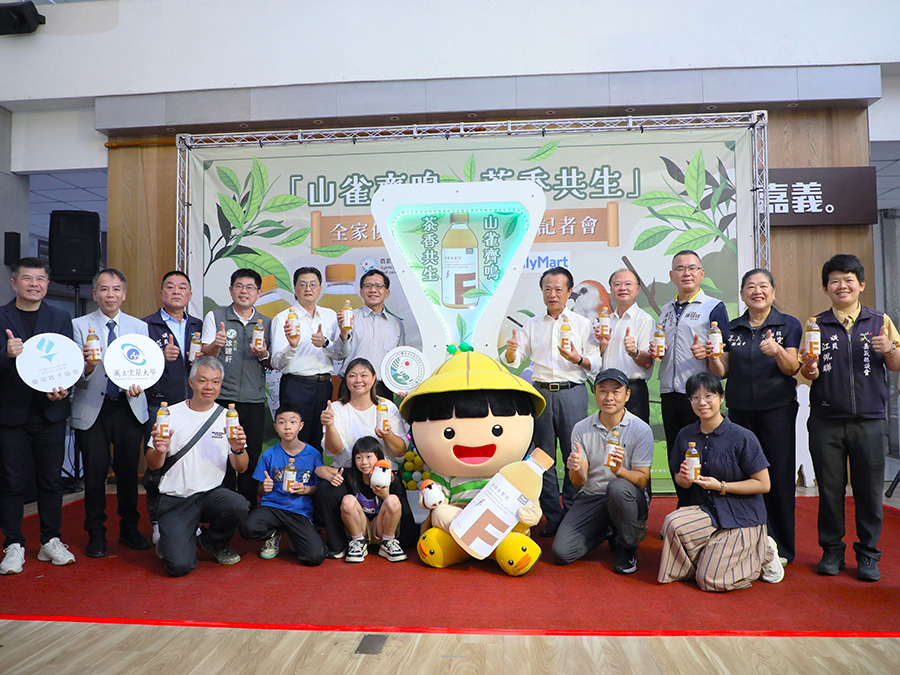 【記者謝敏政嘉義報導】嘉義縣政府攜手水土保持局南投分局及農業部茶及飲料作物改良場,共同推出「FMC雀語金萱茶」,6日在縣府招商空間舉辦「山雀齊鳴.茶香共生」記者會,宣布該產品在全台4,300家全家便利商店獨家上市,消費者可輕鬆選購,細品來自嘉義縣山林間的自然茶香。