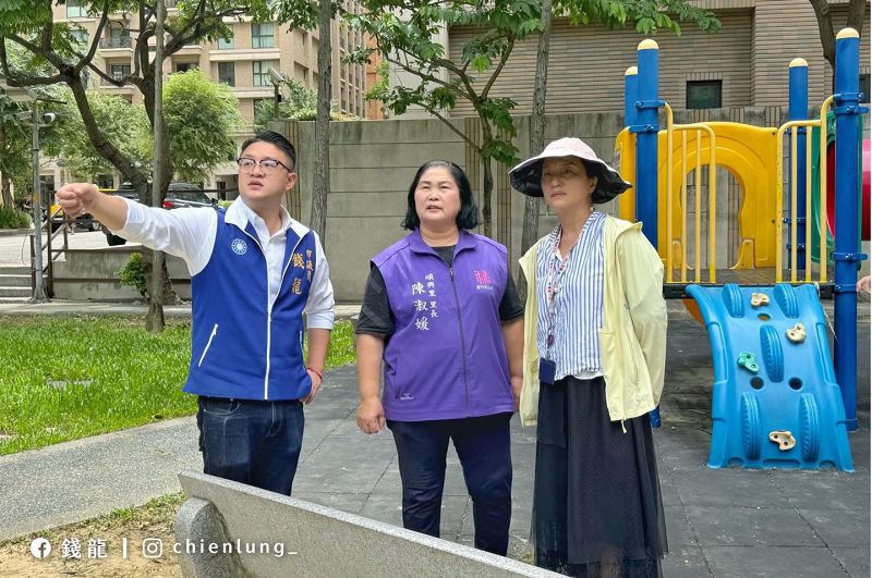 在順興里長陳淑媛積極反映下,桃園市議員錢龍服務團隊隨即啟動會勘,並以「長幼共用、安全無礙」為原則,提出具體改善建議包括:1.優化園區動線規劃,新增特色遊具與體健設施,兼顧孩子探索與長者運動需求。2.整平高低落差區域,降低長者跌倒及孩童奔跑踩空的風險。3.檢討排水格柵設置點,提升排水效率與整體美觀。4.區隔遊戲場與樹木生長區,避免因樹根延伸造成潛在危險。5.保留既有攀爬網遊具,延續孩子們的回憶,讓更新與傳承並行。