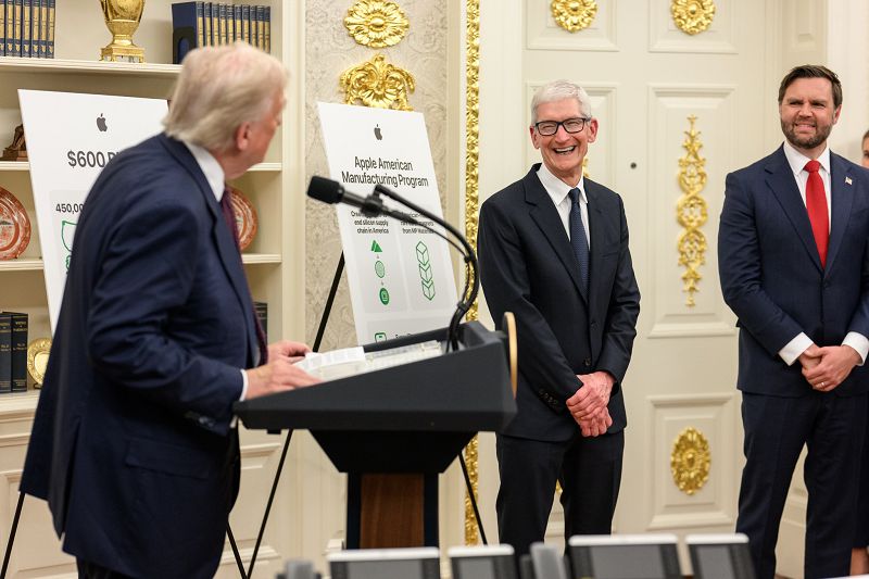 美國總統川普於台灣時間7日清晨5點左右,在白宮召開記者會, 一同現身的還有蘋果執行長庫克(Tim Cook),共同宣布蘋果在美國的重大投資計畫。庫克在白宮與川普一起宣布,承諾未來4年內增加對美國製造業1000億美元的投資,作為「美國製造業計畫」的一部分,這些投資將更多用於供應鏈,以及把先進製造業引入美國。