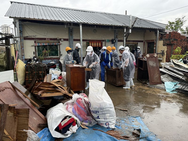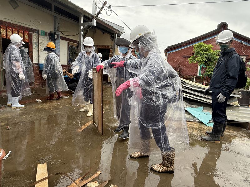 帶隊的志工林利隆,自工班啟動修繕後,就緊盯著災變訊息,領著社區志工投入支援,不管是家屋施作場地的後援小工,搬屋瓦抬鋼板、樑柱,將軍、七股等地都有他們付出的身影。今這裡需緊急清掃,一樣招集志工們,他解釋,「一定要來到現場了解實際狀況,先清理乾淨,才知道後續還需要怎樣的幫忙,要做就要做到最好。」