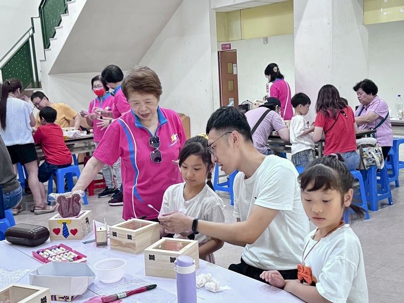 DIY活動主題設計為「愛的存錢筒」與「星光寶盒」,參與家庭在婦幼志工的協助下,透過彩繪、組裝與燈光設計,完成屬於自己獨一無二的作品。孩子們在創作過程中展現高度投入,不僅開心展示作品,更用童言童語表達「最愛爸爸」、「想和爸爸一起玩」,場面溫馨感人。