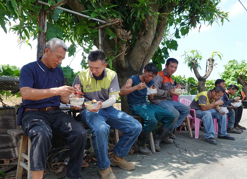 工班中,有一位外籍移工阿程,他在台灣工作十幾年了,雖然會想家,但為了讓家裡的人可以過好一點,於是離鄉背井來到台灣工作。阿程表示在越南比較沒有在過父親節,加上在外地工作也沒有特別關注,今天志工為他們準備父親節午餐,讓他感到很特別、很不一樣,阿程說:「很謝謝有關心到我們,今天特別開心。」
