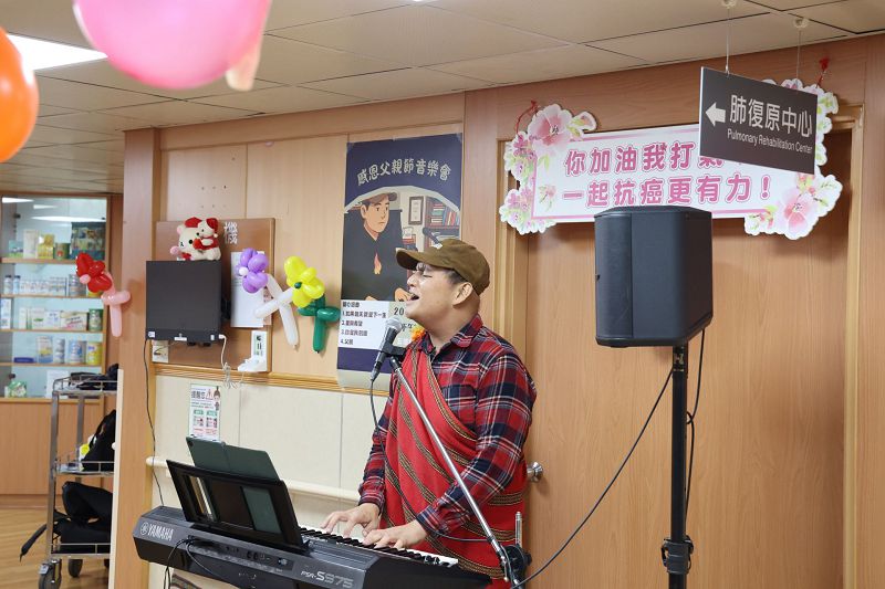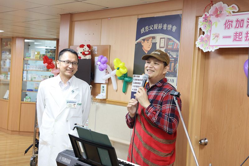 去年12月,簡仁智被診斷罹患頭頸部腫瘤第四期,之後積極接受治療,雖然在病中,他不改風趣幽默的個性,決定用自己的專業讓病房多一點歡樂氣氛。住院期間他身體狀況允許時就開始在病房「走唱」,帶給醫護人員歡樂也鼓勵一起抗癌的病友們。治療過程雖然傷到他寶貴的聲音,簡仁智也沒有放棄唱歌,就在三個多月前,簡仁智的療程即將結束,他也馬上接到演唱邀約,他想要好好感恩醫護團隊幫自己恢復健康,又看到父親節即將到來,自己和父親都是花蓮慈院血液腫瘤科主任朱松肇醫師的病人,受到很多的照顧,因此他積極復健自己的聲音,決定將復原後的第一場感恩音樂會,就辦在父親節前夕的花蓮慈院五東病房。