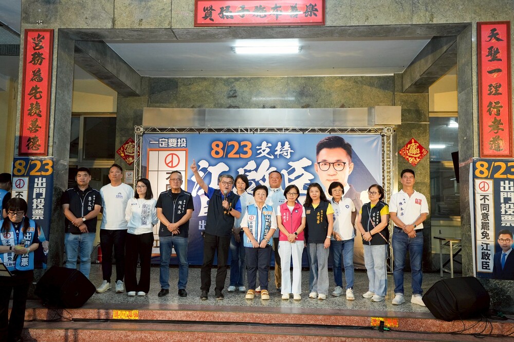民眾黨籍的市議員、台中市黨部主委陳清龍也站上台發聲。他強調「藍白合作」不只在議會,在立法院同樣有效率,江啟臣正是促成合作、推動政策的關鍵人物。他也特別提到核三延役公投的重要性,呼籲台中市民一併支持江啟臣、也支持乾淨穩定能源,「罷免投不同意,公投投同意,給台灣一個更穩的未來!」