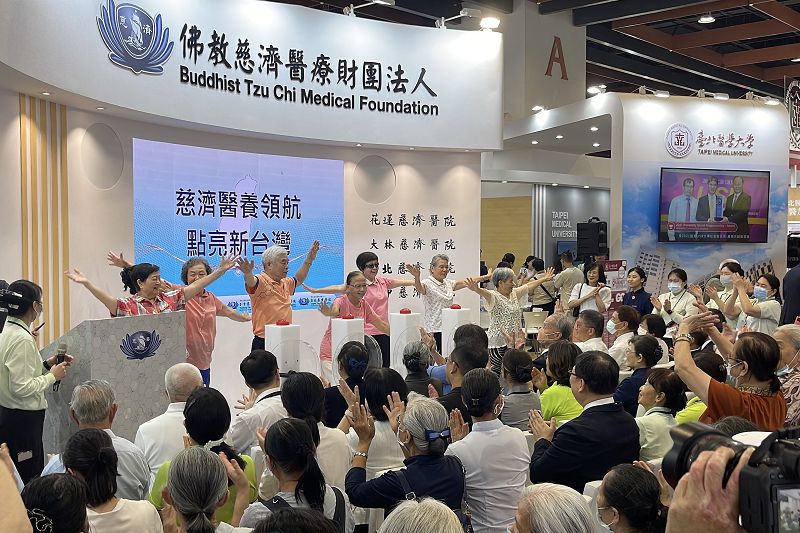 2025年第二屆高齡健康產業博覽會8日盛大開幕,慈濟醫療體系以「慈濟醫養領航,點亮新臺灣」為主題參展,呈現在高齡醫療、長照服務與智慧科技整合上的創新成果。衛福部長邱泰源親臨揭牌儀式,肯定慈濟醫療體系多年深耕社區、推動高齡健康促進與照護創新的成果,盛讚慈濟是推動長照的重要推手。北區長照關懷據點平均年齡超過八十歲的長輩,更在現場表演歌舞律動展現青春活力,贏得熱烈掌聲!
