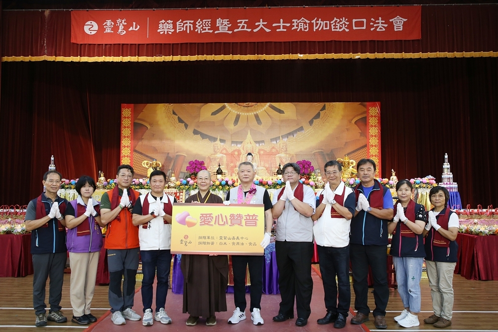民政處補充,靈鷲山的愛心贊普行動,不侷限於物質上的捐助,更將大愛精神融入到整個社會公益工作中。從關懷弱勢到保護環境,靈鷲山秉持「愛地球、愛和平」的理念,更積極推動環保教育,倡導靈性生態的全球運動,這些無私奉獻不僅服務地方,更展現佛教慈悲濟世的精神,對社會福祉的長遠發展深具影響。靈鷲山每年度都會辦理2 次法會及愛心捐贈,今日共捐贈100份慈善物資,將由市府社會處協助提供弱勢家庭名冊,化宗教力量為大愛,照亮社會每一個角落。