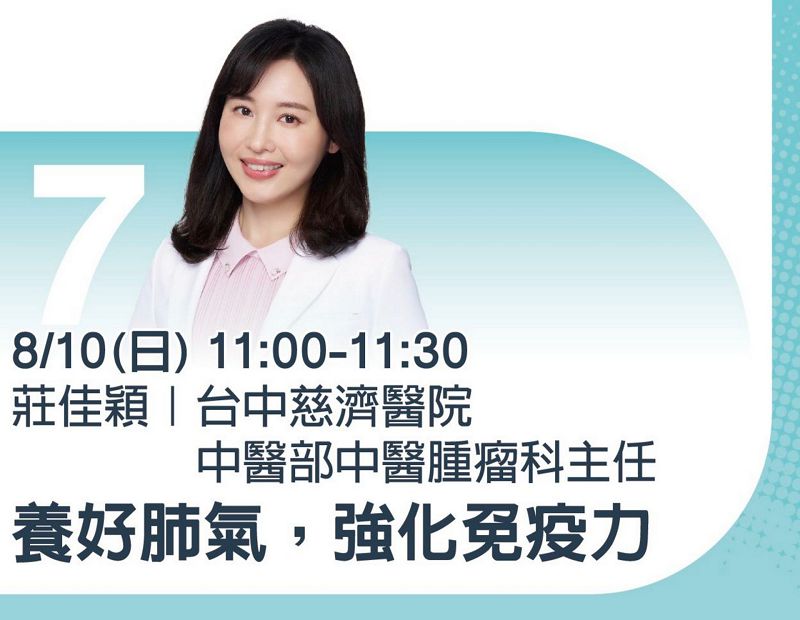莊主任表示,肺是最早接觸空氣的器官,隨年齡增長功能也會慢慢下降,但透過日常調養與生活管理,每個人都能讓自己「氣順身安」。許多長輩走沒幾步就喘,冬天一感冒就拖很久,其實很多是「肺氣虛」所造成。莊佳穎也推薦八段錦、靜心冥想與深呼吸等簡單運動,能幫助肺氣充盈、舒壓養神。日常搭配黃耆枸杞雞湯或山藥銀耳湯,更能潤肺養陰、提升免疫力。十日上午莊佳穎主任將在名人講堂以「養好肺氣,強化免疫力」主題演講,提供長輩養好肺氣的養生秘方,歡迎大眾踴躍參加。