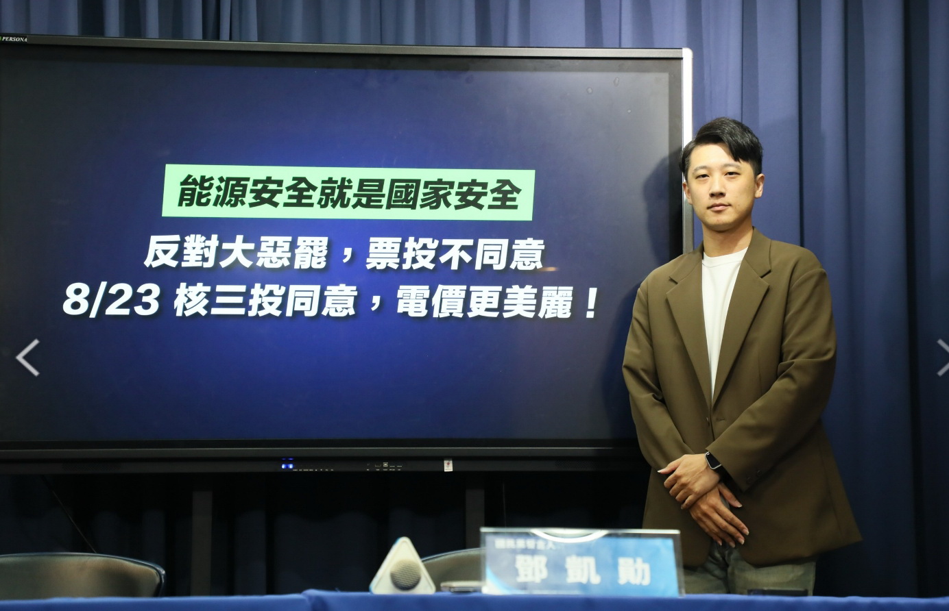 國民黨召開記者會,發言人鄧凱勛表示,世界趨勢都在延役核電,美國有96座核能反應爐通過延長使用執照,日本14座核電廠重啟,法國、加拿大、芬蘭、英國都宣布核電廠延役。