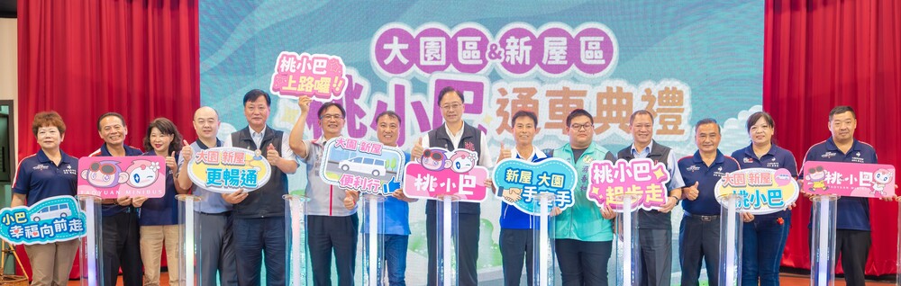 張善政表示,大園與新屋區4條桃小巴路線正式啟用,車輛同步換上全新外觀,結合桃市府吉祥物ㄚ桃、園哥設計,更顯可愛親民。未來桃小巴路線將由現行32條倍增至近70條,深入社區與偏遠地區,提供便捷接駁服務,成為桃園公車發展的重要方向,歡迎市民踴躍搭乘。