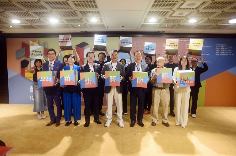 【記者林盈焜羅玉女苗栗報導】2025苗北藝術節將於10月3日至12月28日在苗北藝文中心盛大登場,苗栗縣長鍾東錦14日偕同文化觀光局長林彥甫、苗北藝文中心董事長徐千剛及藝術總監林佳瑩,在台北國家戲劇院交誼廳舉行記者會宣傳。他感謝各藝文團體與藝術家多年來的支持,讓苗北藝文中心光彩耀眼,更獲得廣大民眾喜愛,也誠摯邀請全國觀眾齊聚苗栗,共享一年一度的藝文盛宴。