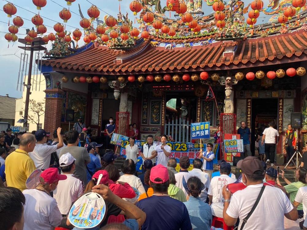 【記者陳良安竹山報導】823罷免投票進入最後衝刺,國民黨主席朱立倫15日下午4時抵達竹山鎮連興宮廟口,陪同立委游顥展開拜票活動,朱立倫表示,總統賴清德說不是票多的贏,這種言論是反民主、是真正的獨裁,呼籲鄉親團結一致,在823這一天投下不同意罷免票,讓南投兩位優秀的立委游顥、馬文君留下來繼續打拚,用選票展現真正的民意力量。