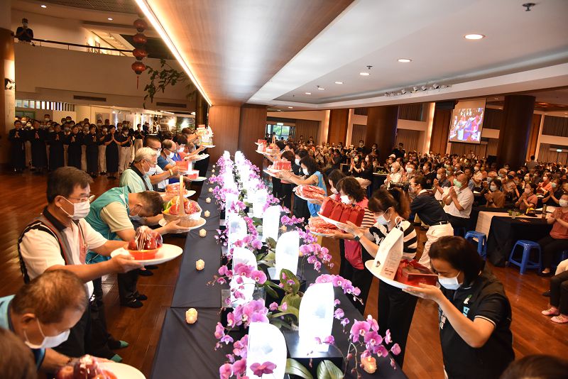 活動中特別邀請鄰里長及社區代表進行獻供儀式,結合社區對吉祥月祈福與祝福,期盼透過共同推動孝親護生,慈悲關懷的精神。