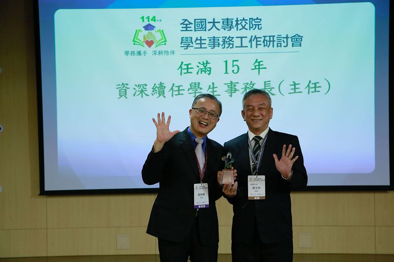 楊柳颱風剛離開,教育部「114年度全國大專校院學生事務工作研討會」八月十四日至十五日在慈濟大學舉辦,來自全台大專校院共162校、177人參與。教育部學生事務及特殊教育司司長吳林輝親自頒發感謝獎牌,感謝資深續任及卸任學生事務長,並再次肯定各校學務長、主任的貢獻。同時,藉由專題演講和研討分享,讓各校熟悉當前教育政策規劃,相互交流和經驗傳承,更針對重要議題集思廣益,整合意見,提升學務工作效能。