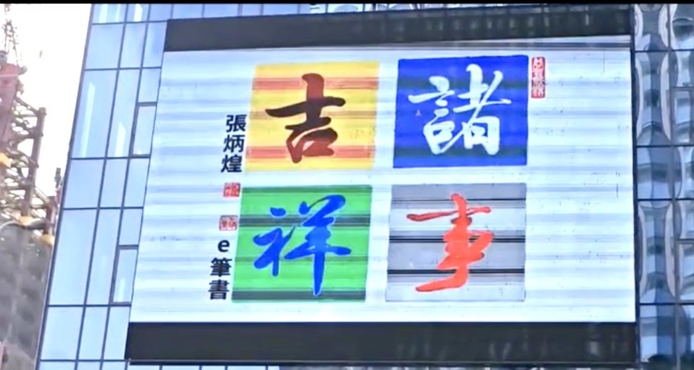 國內繼華航在桃園機場貴賓室,也有他的作品展示外,人來人往的台北車站日前也有大螢幕,播放張炳煌教授的祝福平安、吉祥等墨寶,給遊客看後無比親切開心。