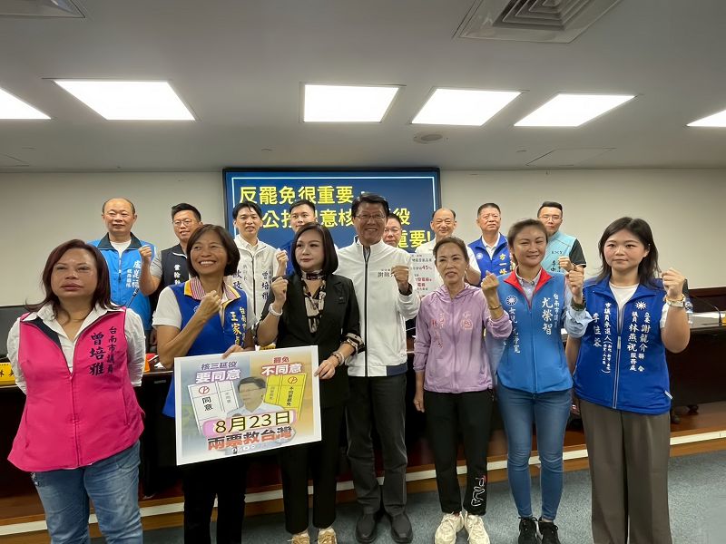 謝龍介委員帶領著國民黨團書記長林燕祝、王家貞、蔡育輝、林美燕、許至椿、方一峰、曾培雅議員,李中岑、盧崑福、尤榮智也派主任出席,四位國民黨年輕議員參選人尤淨寬、葉翰勳、歐正豪和李佳蓉,共同出席「反罷免很重要,公投同意核三延役也很重要」記者會,也邀請民政局出面說明,為何鄉親都不知道823要公投?