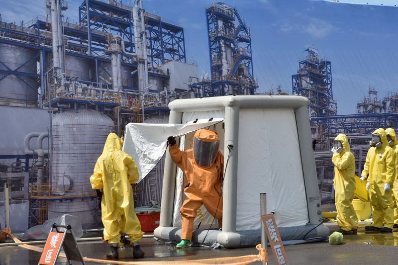 模擬氯氣外洩等高風險化學災害情境,並導入化學偵檢車、重型清毒車。