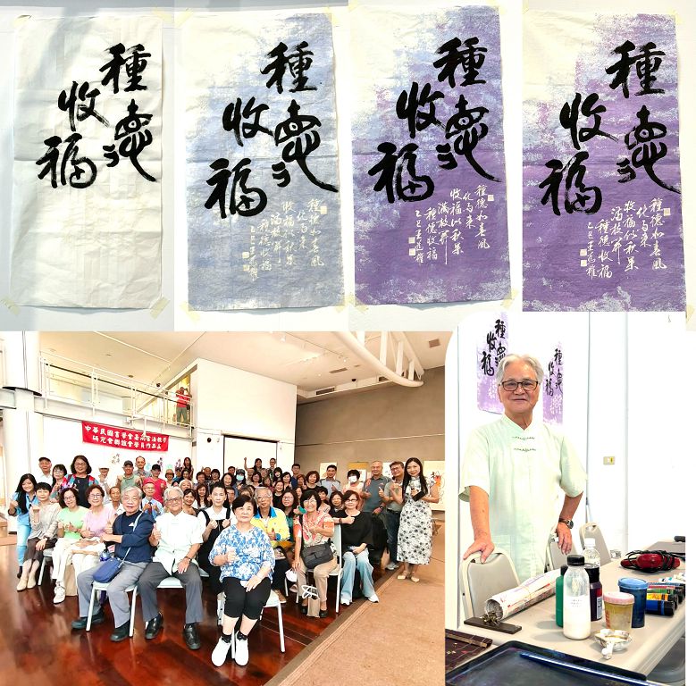 【記者柳芬馨基隆報導】傳統書法也能玩出新花樣!中華民國書學會於8月19日下午在淡江大學文鯔藝術中心舉辦的《彩墨神遊》白墨液書法創作講座,淡大書法研習聯誼會召集人黃素華團隊承辦,吸引來自基隆台中台南高雄各地超過70位書法愛好者參與。由書學會理事長王為權主講分享,帶領探索「彩墨書法」的無限可能,突破傳統書寫框架,開啟文字藝術的新視野。