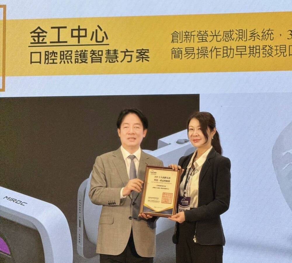 金屬中心所研發之『口腔照護暨吞嚥賦能智慧方案』更榮獲本屆博覽會十大高齡友善科技獎,由董事長劉嘉茹代表中心接受賴總統親自頒獎,突顯出中心技術不僅是解決產業需求,更是針對高齡生活問題所提供的解方。重要的是該方案已導入AI與非接觸檢測技術,從牙菌斑偵測、口腔清潔指引,到吞嚥訓練與遊戲化復健系統,全面守護長輩「好齒力」,提升自我照護意願。且相關技術已技轉予台朔重工及台塑生醫,並結合高露潔、北昕資訊資源串接長照機構應用。