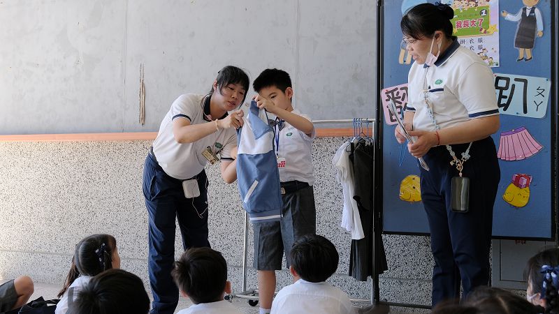 在老師細心教導下,孩子們學習摺衣服的技巧,於日常中落實自立與規矩。