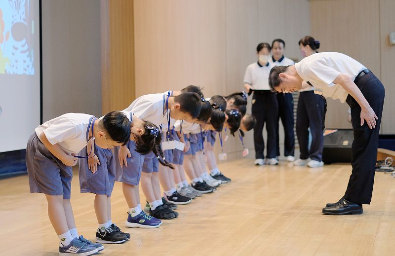 校長與學生彼此鞠躬道感恩,傳遞慈濟校園深厚的人文之美。