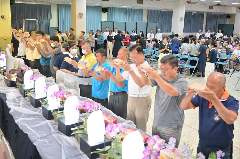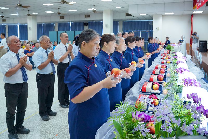 8月24日早上九點,慈濟志工在彰化市忠孝國小舉辦「七月吉祥月祈福感恩會」,除了邀請里長、校長,還有供佛齋僧大會及企業人士來供齋,工作人員七十五位及會眾共有四百人參與,一起虔誠持齋禮佛。