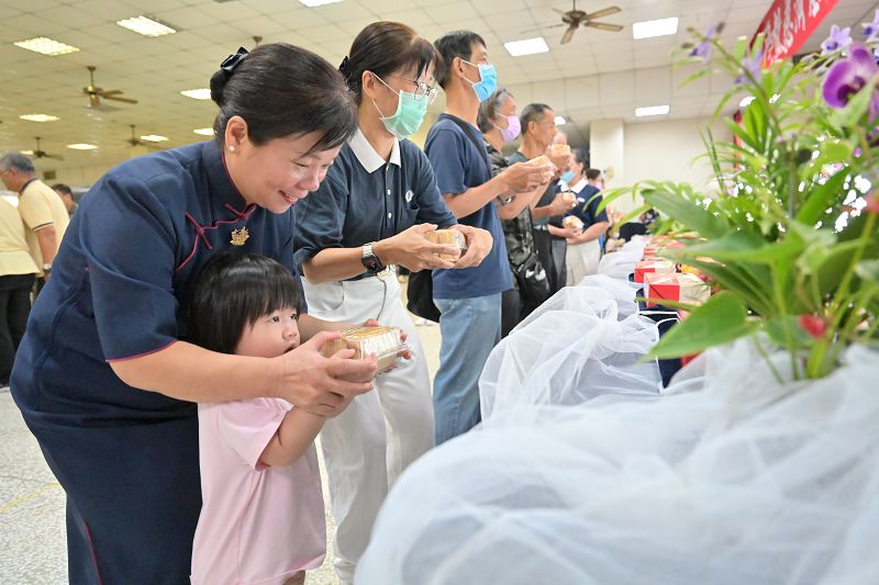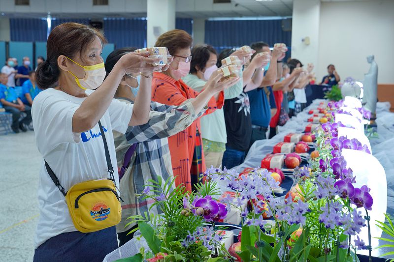 演繹小水滴成員葉秀梅師姊,是志工組長,她分享:七月是佛教的吉祥月、孝親月,藉這祈福會讓大家知道孝親、齋戒很重要。我們更要愛護地球,改掉燒金紙、殺生、拜拜的習慣,改用鮮花素果。希望大家可以當接法水、傳法、說法的人,祈求人心淨化、社會祥和、天下無災!
