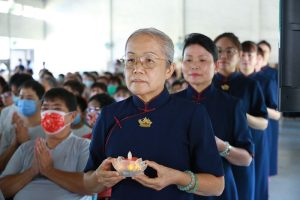「一進會場,聽到莊嚴的唱頌聲,忍不住哽咽。」張秋芬女士被梵唄聲攝受入心,其母親剛往生不久!