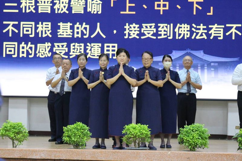 員林一區和氣組長鄭佳子,很感恩會眾大德今日踴躍參與祈福會。鄭佳子提到,今年七月吉祥祈福會,融入梵唄唱誦和經藏演繹。希望讓大家體會到寧靜莊嚴自在的氛圍。透過法會了解正信的七月,救倒懸愛護一切的生命,世界才會平安。
