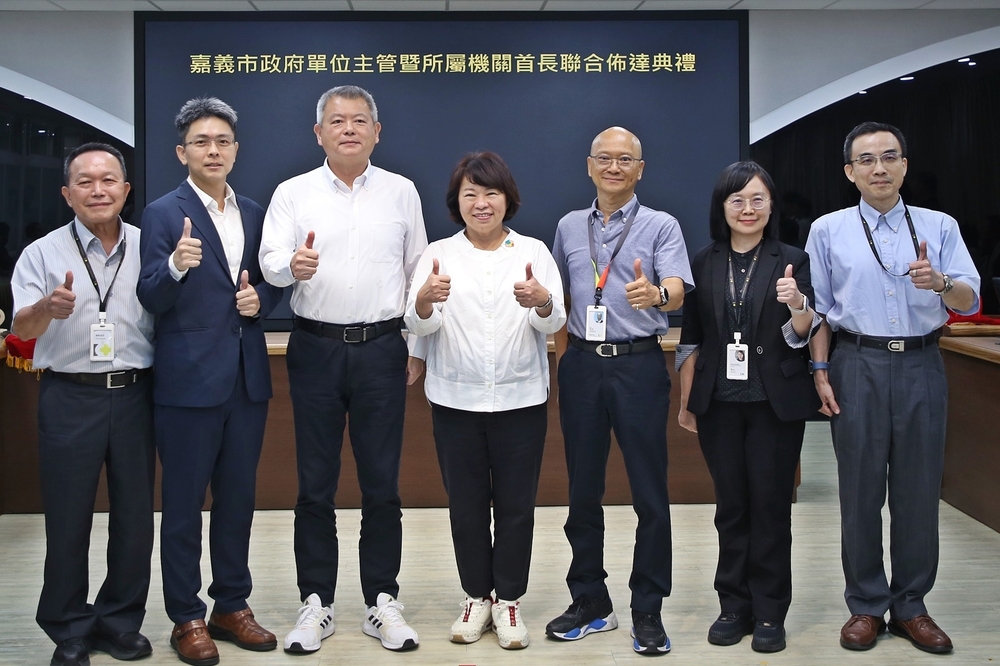 【記者張朝福嘉義報導】嘉義市長黃敏惠日前於市務會議前,進行人事布達典禮,期許藉由職務調整,強化主管人員跨域歷練。典禮由黃敏惠市長親自主持,宣布環保局長由原行政處長蕭令宜接任,行政處長由原地政處長陳光興接任,並在主計處長阮鼎元監交下完成交接印信。同時,社會處勞資及勞動條件科長黃俊傑服務年資達35年3個月,將於9月4日申請自願退休,黃敏惠市長也藉市務會議致贈狀牌表達感謝。