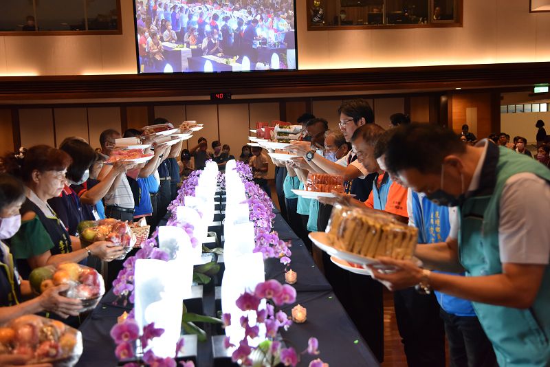 福興鄉鄉長蔣煙燈、秀水鄉鄉長林英嘉,帶領社區理事長、總幹事誠心獻供。