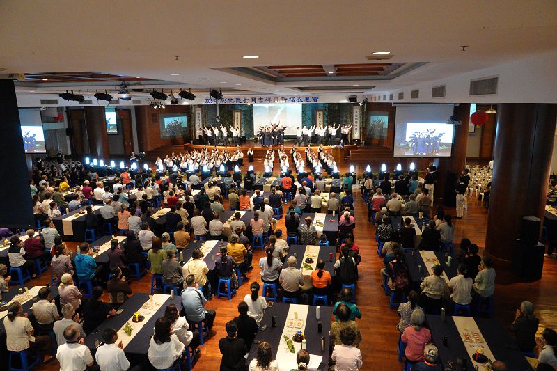 民眾陳碧蓮帶高齡101歲的爸爸參加祈福會。陳碧蓮表示,民間習俗只要是農曆七月,就是從初一拜到三十,現在用祈福方式,莊嚴又能心安。