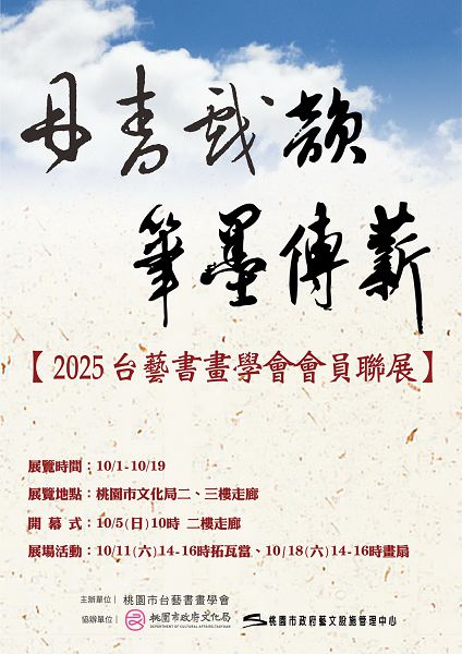 葉蘭香表示,台藝書畫學會繼五月會員大會後,將在10月1日至19日,以「丹青戲韻,筆墨傳薪」為題,在桃園市文化局二、三樓迴廊,舉辦2025會員聯展。展出創作品涵蓋書法、彩墨、水墨畫、膠彩等80餘件,均是顧問、會員的精心作品。開幕式將擇於10月5日上午10時在展場舉行,展覽期間的二個週六(10/11、10/18日)午後也在會場舉辦拓瓦當、畫扇二項與民眾互動的動態活動。另外,學會也將於11月1、2日舉辦二天一夜的「會員中台灣之旅」,這一連串的活動規劃,希望會員們能持續凝聚情感,共同努力與支持,攜手並進,將學會再創高峰。