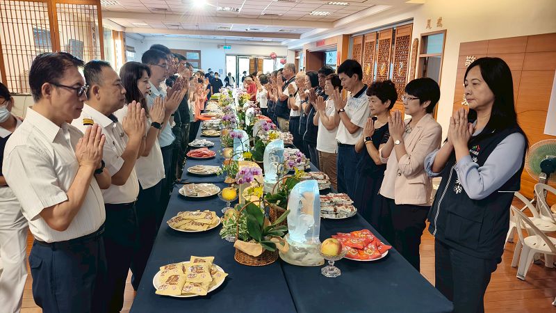 吳昆釧大隊長說,他們的工作項目就是每天都在做冒險的工作,不管天上、或是地底的災難,今天來參加吉七月祥月除了為自己祈福,也為部屬祈福,大家在出每項任務時,組員們都能順利達成,並且平安歸來。