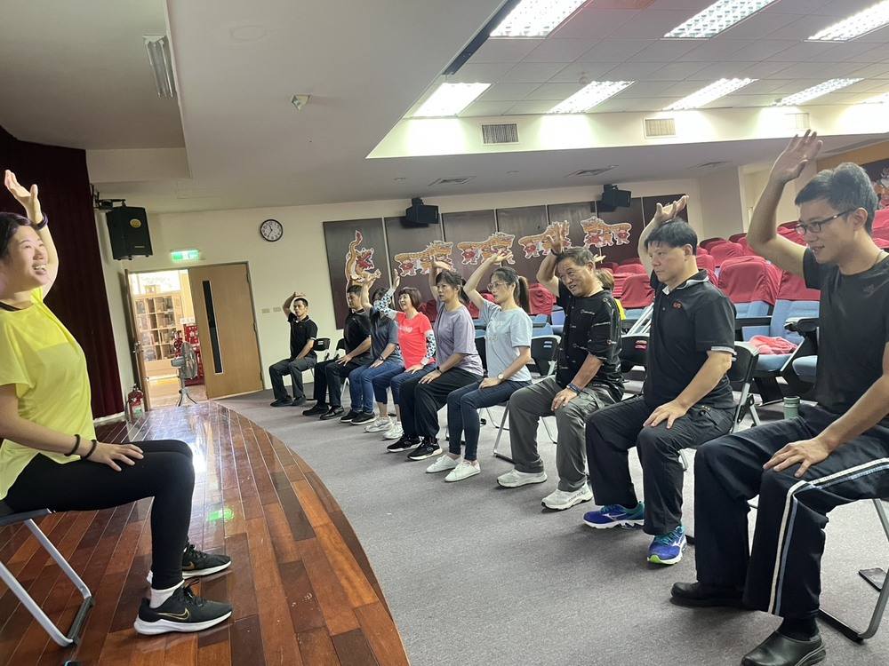 課程中,戴治療師示範並指導「抱開拉轉」等動作,幫助放鬆臀部與髖關節,減輕骨盆與下背壓力。帶領同仁以手掌或拳背推壓大腿與小腿經絡,有效促進循環,減緩下肢疲勞。搭配血海穴、陰陵泉等經絡穴位的保健操作,可以快速掌握自我舒緩的技巧,增強耐力與靈活性。