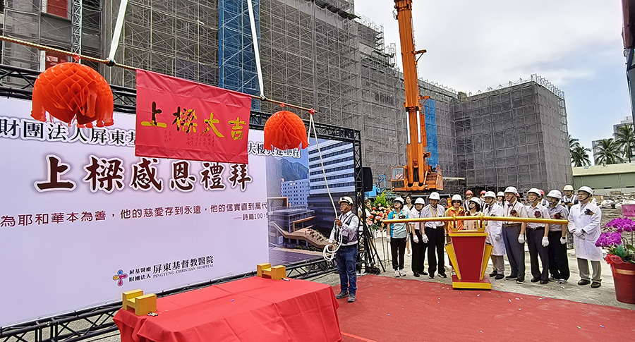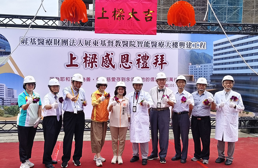 上樑典禮由屏基執行長余廣亮、副執行長劉侃、榮譽院長陳永興、院長吳榮州帶領醫療團隊,並邀請屏東縣政府衛生局局長張秀君、屏東市公所專員許淑娟、華山里里長謝沅廷、大連里里長董憲坤等貴賓出席,共同見證大樓逐步成形的重要時刻,並為工程順利與未來的醫療使命獻上祝福。