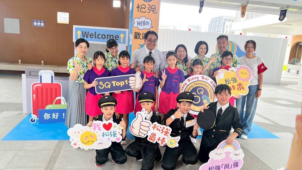 114學年度是松強國小開學元年,1日該校迎來創校首屆一至五年級開學日,該校除了有特別為一年級新生舉辦別具特色的「始業式」,也是為全校學生精心安排了入校儀式,學校以「松強航空公司」為主題,將校園布置為充滿想像的「機場大廳」,象徵孩子們即將展開全新的學習旅程。