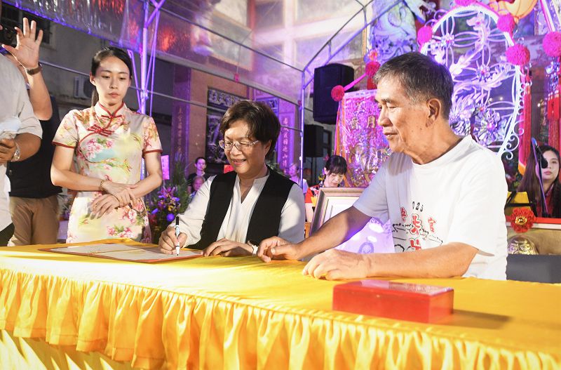 彰化快官法主廟9月1日至9月3日舉辦為期三日的法主公聖誕慶典,並於2日晚間迎來國際友廟馬來西亞馬六甲天地君廟主席傅鎮業、拿督等率領五十餘名幹部跨海參與盛事,在彰化縣長王惠美的見證下,雙方順利完成結盟儀式。王惠美縣長、副議長許原龍、彰化市長林世賢、彰化市民代表會主席陳文賓、榮譽大總理鄭錦元以及主委張守鎮等貴賓參與新建牌樓揭匾儀式,共同祈求彰化風調雨順、國泰民安、闔家平安。彰化快官法主廟係台灣法主公重要信仰中心之一,於國曆9月1日至9月3日(農曆7/10至12日),舉行為期三天的法主公聖誕慶典暨牌樓慶成揭匾普度超拔三天大法會。(圖文:記者鄭惠珠)