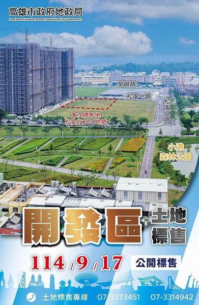 【記者于欽智高雄報導】高雄市政府地政局114年度第3季開發區土地標售,共推出5標5筆優質建地,訂於9月17日在地政局會議室開標,合計總底價12億2136萬7279元。