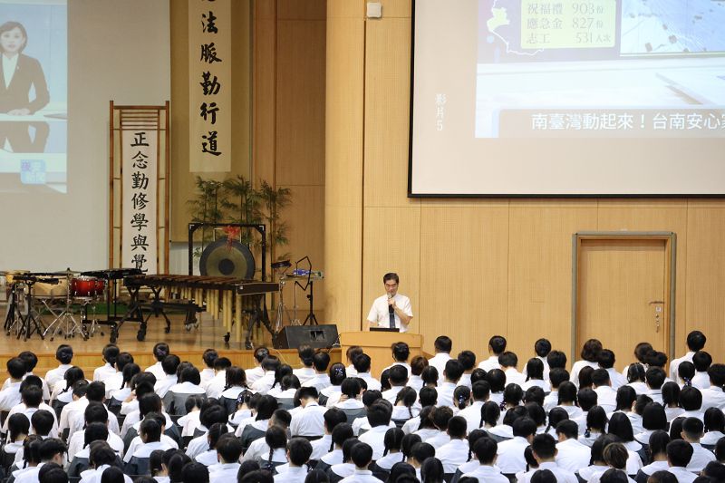 本校大家長姚智化校長在致詞中分享了暑假期間,臺南慈中的師生與社區夥伴們一同救災的足跡,也勉勵全體師生莫忘慈濟的濟世精神,能落實在生活之中。他特別提到即將面對學測的高三生,鼓勵他們迎接挑戰,努力追求卓越。